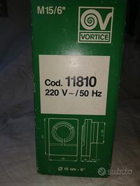 Ventilatore aspiratore aereatore da parete per tubo d. 15,5 cm Vortice originale modello M15/6" cod. 11810 temperatura max 40°C 220V 50Hz 50W. Misure 231 x 182 x 39 mm Articolo mai utilizzato, in confezione originale, residuo di magazzino da cessata attività di vendita.