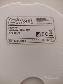 Vendo ventilatore CMI modello ft30-p1y 220-240 v- 50hz 40w 75 db di rumore . perfettamente funzionante 3 velocita’ 2 possibilita’ oscillante o fermo . possibilita’ anche di orientarlo in altezza. Possibilita’ di ritiro diretto e di visione previo appuntamento con Subito.it. Spedizione con subito.it o con altri corrieri con spese a carico dell’acquirente Misure imballo in CM. altezza 52- larghezza 38 – profondita’ 29. Peso kg 2,600.