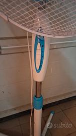 Ventilatore Neo a piantana bianco e blu, ideale per rinfrescare qualsiasi ambiente della casa. La struttura è leggera ma stabile, grazie alla base a croce con quattro appoggi. Le pale sono protette da una griglia resistente e il pannello comandi permette di scegliere facilmente tra tre velocità diverse.