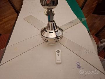 Ventilatore acciaio spazzolato e bianco lucido, con telecomando