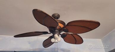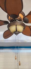 ventilatore da soffitto in rattan con intarsi in legno scuro, diametro totale 125 cm