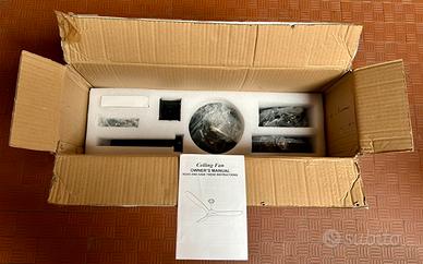 Ventilatore da Soffitto Zambelis Lights modello 20259 Perfettamente Nuovo e Ancora nel Suo Imballo Originale Design Moderno con Finitura in Metallo Nero Opaco e Tre Eleganti Pale in Finto Legno Massello color Caffè/Noce