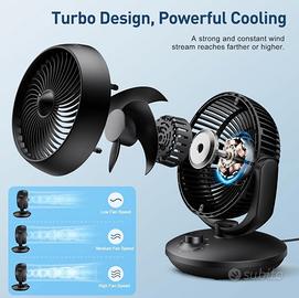 Ventilatore da tavolo a 3 velocità, ad impostazione fissa oppure oscillante.