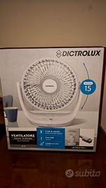 Il ventilatore e nuovo mai usato. Può funzionare a corrente o con batterie 18650 incluse.