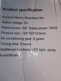 Vendo ventilatore e umidificatore portatile 2 in 1 utilizzabile con acqua o senza, con funzionalità luci notturne e potenza regolabile da 1 a 6 livelli, Nuovo come da foto. Cavo di ricarica e libretto di istruzioni nella confezione. Zona di ritiro Viareggio o spedizione in contanti tramite il servizio tutto subito