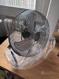 Vendo ventilatore da pavimento "Equation Jervis3" color cromo (interamente in metallo), diametro 45 cm e potenza 120W. Caratteristiche principali: Potenza: 120 W Diametro: 45 cm Materiali: metallo. Velocità: 3 livelli selezionabili Cavo: 1,6 metri. Il ventilatore è come nuovo, non presenta nessun segno di usura. È stato usato solo un paio di volte. Attualmente in negozio (Leroy Merlin) costa 55€. Vendo a 20€ non trattabili, visto che il prodotto è immacolato. Disponibile per ritiro a mano a Milano in zona Portello M5 oppure con spedizione.