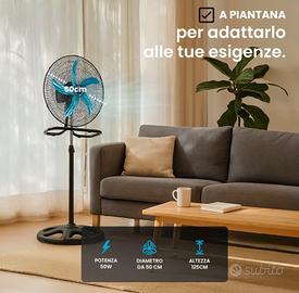 Ventilatore 50W 3 in 1 da Parete, Tavolo e Piantana con Pale 50 cm in Metallo