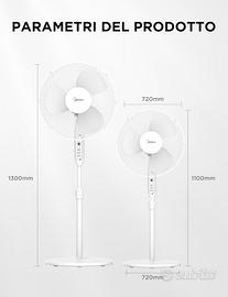 VENTILATORE A PIANTANA MIDEA DI ALTA GAMMA: Dotato di 3 impostazioni di velocità regolabili e 3 pale, questo ventilatore offre un potente flusso d'aria fino a 50 m³/min. Puoi scegliere tra bassa, media o alta potenza per garantire un comfort rinfrescante.