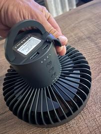 Ventilatore portatile con luce led,3 livelli di intensità aria e luce,timer,ricaricaricabile Usb,batteria 10000 mAh,con gancio ,cavo ricarica e treppiede
