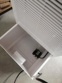 Ha una vaschetta dove si può inserire ghiaccio o acqua fredda e produce aria fresca, oppure in inverno inserendo acqua calda, produce aria calda.