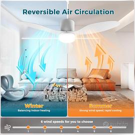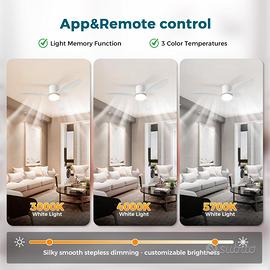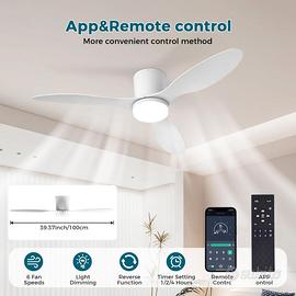 Silenzioso Ventilatore da Soffitto 60W Con Luce e Telecomando 100CM - 6 Velocità DC Reversibile, 3 Pale, Timer, Lampada Dimmerabile - Bianco [Classe di efficienza energetica E]