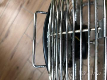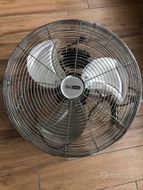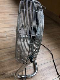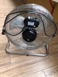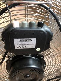 Ventilatore TecnoHome 220-240 V; 50HZ; 90W; da pavimento in ferro e cromo resistente alla corrusione, design portatile, impostazione a 3 velocità, ventola regolabile di inclinazione 110 gradi, barriera protettiva con griglia metallica; misure largh cm60 alt cm55 profondità cm20.