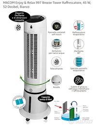 MACOM Enjoy & Relax 997 Breeze Tower Raffrescatore, 45 W, 52 Decibel, Bianco