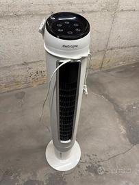 Ventilatore a colonna, gira a 180 gradi è possibile inserire del ghiaccio nell’ apposito vano e rinfresca leggermente l’ambiente , munito di telecomando