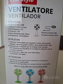 ventilatore nuovo. Completo di tutto. Al buio cambia i colori.