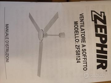 Ventilatore a soffitto tre pale diam. complessivo 146 cm. nuovo mai usato perché aperto l'imballaggio non aveva la lampada e non era utile per le mie necessità