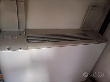 Ventilconvettore fisso Aermec mod.FCZ200A. Misure L.75XH.48XP.22. Prodotto principalmente per l'erogazione di aria calda, può fare da ventilatore in estate. Si collega all'impianto dei riscaldamento della caldaia. E' stato installato ma non è stato mai usato in quanto l'uso previsto per quella stanza non ha avuto esiti. Essendo un prodotto con molti dati tecnici ellego foto così da poter consultare con precisione. Io l'ho installato per una stanza di 30 metri quadri. Come si può vedere dalle foto il prodotto è nuovo (vedi anche foto dell'interno). Ho pagato il ventilconvettore 600 euro e sto facendo un ottimo prezzo di vendita. Si potrebbe dire che è nuovo. Ho il suo libretto d'uso e di installazione originali.