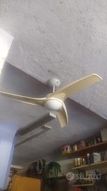 Notevole e bella ventola a pale co lampada in opaline bianco avorio lunghezza pale 54 cm