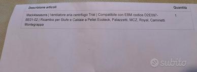 Vendo ventola aria stufa a pellet mai usata ancora nella sua confezione originale prezzo pagata €160,00. In vendita a €100,00