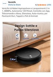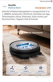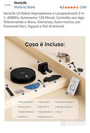 VersLife L6 Robot Aspirapolvere e Lavapavimenti 2 in 1, 4000Pa, Autonomia 120 Minuti, Controllo con App, Telecomando e Alexa, Silenzioso, Auto-ricarica, per Pavimenti Duri, Tappeti e Peli di Animali. NUOVO NEANCHE MAI TIRSTO FUORI DALLA SCATOLA