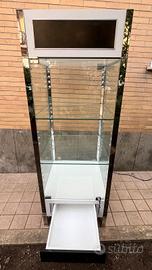 Vendo elegante vetrina espositiva con struttura in acciaio cromato e ripiani in vetro temperato.