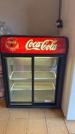 Vetrina frigo CocaCola da banco, funzionante con luce interna e scritta illuminata. Misure: profondità 39 cm, larghezza 65 cm, altezza 85 cm. - No spedizione -