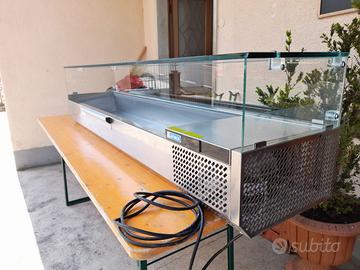 Vetrina refrigerata da banco perfettamente funzionante; lunghezza 182 cm.