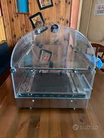 Vendo vetrina espositiva riscaldata a due ripiani, apribile su entranbi i lati, con temperatura regolabile e vaschetta acqua per umidificazione. L’oggetto è usato e quindi presenta i classici segni da lavoro. Misure: L 50 cm x P 34 cm x H 40 cm. 230 volt 500 watt € 150,00 più spedizione