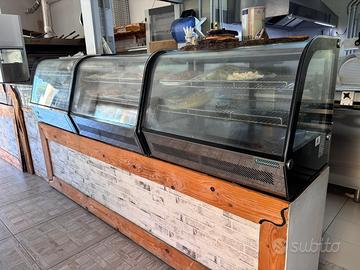 2 vetrine refrigerate 1 vetrina riscaldata 1 banco refrigerato con cella frigo Trasporto a carico dell’acquirente. Prezzo leggermente trattabile.