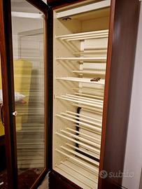Vendesi per inutilizzo vetrinetta per vini in legno marca Enofrigo. Poco usata, come nuova. Dimensioni: 59x46x203. Temperatura di esercizio +4 e +12. Con ventilazione per eliminare la condensa sulla vetrocamera comandata da interruttore. Illuminazione sulla plafoniera.