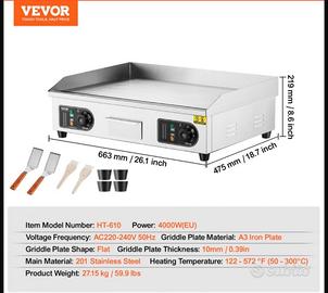 VEVOR Piastra Elettrica Commerciale, Griglia Flat Top da Banco da 4000 W, Temperatura Regolabile