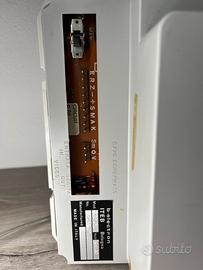 Videocitofono vintage prodotto da b.electron ITEB Bologna, modello d'epoca, originariamente prodotto tra gli anni '80 e '90, noto per il suo design retrò. Presenta un piccolo schermo in bianco e nero e pulsanti fisici per le funzioni principali, come la comunicazione (simbolo cornetta), l'apertura della serratura (simbolo chiave) e l'accensione della luce (simbolo lampadina).