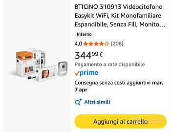 Vendo videocitofono BTICINO Smart 2 fili con possibilità di collegare app dal telefono utile per controllo remoto se arriva il corriere e non siete a casa. (Vendo per sostituzione con modello compatibile con il sistema domotico integrato a Apple HomeKit)