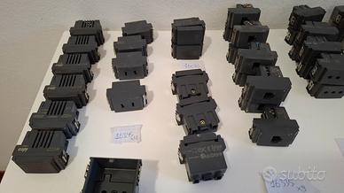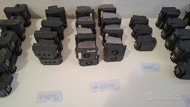 Vendo in blocco il seguente materiale Vimar modello Idea, usate in buono stato, come da foto allegate Pz: 3 16013 - Invertitore 1P 16AX grigio Invertitore 1P 16 AX 250 V~, grigio. Max 200 W per lampade con alimentatore integrato (IEC 60669-1:2017) Pz: 9 16005 - Deviatore 1P 16AX grigio Deviatore 1P 16 AX 250 V~, grigio. Max 200 W per lampade con alimentatore integrato (IEC 60669-1:2017) Pz: Pz: 9 16001 - Interruttore 1P 16AX grigio Interruttore 1P 16 AX 250 V~, grigio. Max 200 W per lampade con alimentatore integrato (IEC 60669-1:2017) Pz: 3 16000 Interruttore 1P 10AX grigio Interruttore 1P 10 AX 250 V~, grigio. Max 100 W per lampade con alimentatore integrato (IEC 60669-1:2017) Pz: 17 16306.10 Presa TV-RD-SAT passante grigio Presa coassiale TV-RD-SAT, 5-2400 MHz, passante, con connettore maschio, attenuazione di derivazione 10 dB, grigio Pz: 8 16201 - Presa 2P+T 10A P11 grigio Presa SICURY 2P+T 10 A 250 V~ standard italiano tipo P11, grigio Pz: 9 16335 - Presa RJ11 6/4 grigio Presa RJ11, 6 posizioni 4 contatti (6/4), morsetti a vite, grigio Pz: 3 16140 Commutatore 1P 10AX grigio Commutatore 1P 10 AX 250 V~ (3 morsetti), con frecce direzionali e posizione OFF centrale, grigio. Max 100 W per lampade con alimentatore integrato (IEC 60669-1:2017) Pz: 2 16080.P Pulsante 1P NO 10A chiave grigio Pulsante 1P NO 10 A 250 V~, simbolo chiave, grigio Pz: 4 16345 Dispositivi di cablaggio / Dispositivi di cablaggio tradizionali / IDEA / Dispositivi Presa polarizzata 2P 6A 24V SELV grigia Presa polarizzata 2P 6 A 24 V (SELV) per spina 01099, grigia Pz: 6 16431.R Spia diffusore rosso grigio Spia per lampada siluro ø 6,3x28 mm o ø 7x31 mm, diffusore rosso, grigio. Fornita senza lampada Pz: 1 16084 - Pulsante 1P NO 10A tirante grigio Pulsante 1P NO 10 A 250 V~, a tirante, con 1,5 m cordone e pomello, grigio Pz: 75 16713. Supporto 3 Moduli Supporto 3 moduli, per scatole 3 moduli, grigio Pz: 1 16580. Termostato elett.riscald. 230V grigio Termo