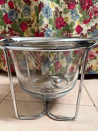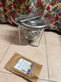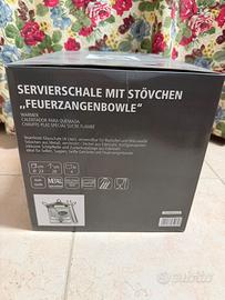 Elegante set con ciotola in vetro resistente al calore, supporto in metallo, mestolo e griglia porta-zucchero. Ideale per preparare vin brulé e zucchero flambé.