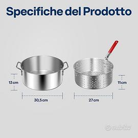 VIVOHOME 9,5L Pentola in alluminio per friggitrice di pesce con cestello friggitrice con manico facile da impugnare per cucinare ali di pollo frutti di mare patatine fritte.