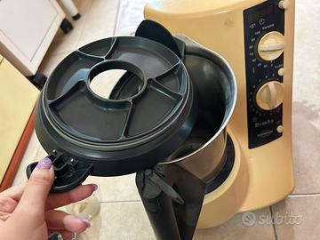 Per appassionati di cucina o esperti di riparazioni: vendo Vorwerk Bimby modello TM21. Il robot è un classico intramontabile della cucina, noto per la sua versatilità e robustezza. Dettagli dell'articolo: • Marca: Vorwerk. • Modello: Bimby TM21. • Accessori inclusi: Il lotto comprende il corpo macchina, il boccale, il gruppo lame e altri accessori visibili in foto .Estetica: Il prodotto si presenta in buone condizioni estetiche generali, con le plastiche ben conservate. • Stato tecnico: Il Bimby è funzionante e si accende regolarmente. Tuttavia, segnalo che una volta acceso non si spegne , pertanto necessita di una revisione tecnica o può essere utilizzato come ottima fonte di pezzi di ricambio originali. Viene venduto con la formula "visto e piaciuto" nello stato in cui si trova, specificamente come non del tutto funzionante.