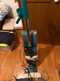 Vendo aspirapolvere vintage Vorwerk Folletto modello VK 121, un vero pezzo di storia della pulizia domestica, noto per la sua incredibile potenza e longevità. L'apparecchio è completo di battitappeto/accessorio per tappeti e moquette (modello ET 340), ideale per una pulizia profonda delle fibre. Caratteristiche e Condizioni: • Stato: L'aspirapolvere è funzionante. Come visibile in foto, presenta alcuni segni di usura sulla scocca e il sacco esterno è stato rinforzato con del nastro telato (riparazione funzionale che non ne pregiudica l'aspirazione). • Accessori: Inclusa la spazzola motorizzata ET 340 per tappeti. • Manutenzione: Molto semplice da usare, i sacchetti di ricambio si trovano facilmente ovunque a prezzi contenuti. Perfetto per chi cerca una macchina affidabile da usare in garage, in taverna, o per chi desidera recuperare i pezzi di ricambio originali Vorwerk.