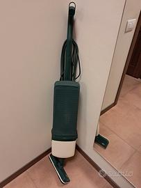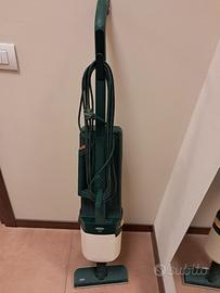 Vorwerk Folletto VK 121, un modello storico degli anni '90 noto per la sua robustezza e longevità. Caratteristiche Principali Potenza: Dotato di un motore da 450 Watt, superiore ai 300 Watt del precedente modello VK 120. Design: Si distingue per la scocca di colore bianco e verde scuro. Funzionalità: È una scopa elettrica a velocità fissa, priva di schede elettroniche complesse, il che ne aumenta l'affidabilità nel tempo. Filtrazione: Include un filtro silenziatore progettato per trattenere micro-polveri, batteri e allergeni.