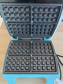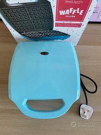 Waffle maker Sweet Society Fizz Creations Ltd Alimentazione: 220-240V, 50Hz, 800W Spina UK a 3 poli Colore: Azzurro baby Piastre: antiaderenti, producono 4 waffle quadrati per volta (stile belga) Indicatori luminosi: rosso e verde sul coperchio (rosso = in riscaldamento, verde = pronto) Consegna a mano a Firenze o Milano o spedizione tramite Tuttosubito a carico dell'acquirente.