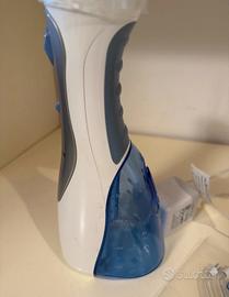 Indicazioni: L'apparecchio sta' in una mano, si ricarica con il proprio caricabatterie in dotazione, viene direttamente riempito di acqua ( o acqua e colluttori) ed e' pronto ovunque, senza piu' la necessita' di essere collegati alla rete elettrica.