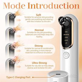 Elettrico Comedone per Pulizia Viso e Rimozione Pori, Aspira Brufoli e Impurità con 4 Testine e 4 Modalità di Aspirazione, Blackhead Remover Vacuum