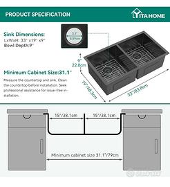 YITAHOME Lavello da Cucina, Lavello a Doppia Vasca Lavello in Acciaio Inossidabile con Cestello di Scarico e Tubi Idraulici per Rifiuti Scolapiatti, 83,8 * 48,2 * 22,8 cm, Lavello Nero