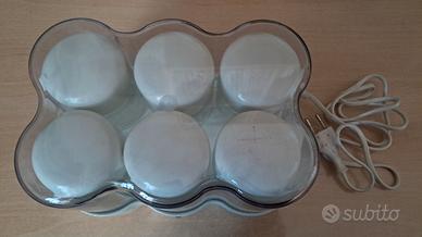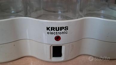 Yogurtiera Krups Joghurette per preparare autonomamente yogurt fresco e naturale; 6 vasetti in vetro con coperchio da 150 ml. Fare lo yogurt in casa conviene notevolmente sia in termini economici (risparmio fino al 50-60% rispetto ai prodotti di alta qualità) che di salute. Si ottiene un prodotto più naturale, fresco, ricco di fermenti vivi (miliardi rispetto ai milioni industriali) e privo di conservanti, addensanti o zuccheri aggiunti. Vantaggi principali: •Risparmio Economico: Con 1 litro di latte e un vasetto di yogurt starter (o fermenti), si producono circa 1 kg di yogurt, riducendo i costi rispetto all'acquisto frequente. •Salute e Genuinità: Contenuto di probiotici più elevato e controllo totale sugli ingredienti •Personalizzazione: Possibilità di scegliere il tipo di latte (intero, parzialmente scremato, vegetale) e la densità. •Sostenibilità: Riduzione degli sprechi di plastica grazie all'uso di barattoli di vetro.