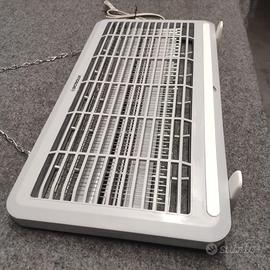 Vendo zanzariera elettrica Dictrolux un articolo studiato per rilassarti e goderti l'aria aperta senza fastidi a casa, in giardino o in campeggio. Le potenti lampade led di questa zanzariera attraggono gli insetti e la griglia elettrificata li elimina senza l'ausilio di spray insetticidi o prodotti chimici dannosi alla salute. La griglia esterna di sicurezza protegge da contatti accidentali. Efficace contro mosche, zanzare e insetti volanti. La puoi posizionare dove vuoi tramite la pratica catenella ed i piedini regolabili. Gli insetti uccisi cadranno nel vassoio estraibile che permetterà di lasciare l'apparecchio sempre pulito. Raggio d'azione 50 mq. Interruttore on/off. Lunghezza cavo 100 cm. Dimensione h27x50x4 cm. Alimentazione 230V~50Hz - Potenza 6W. Articolo usato solo 2 volte in eccellenti condizioni sia estetiche che funzionali.