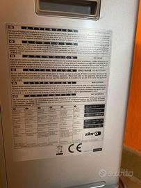 Stufa a combustibile liquido portatile in ottime condizioni con alimentazione a corrente compresa di carrellino con ruote per lo spostamento da una stanza all'altra.