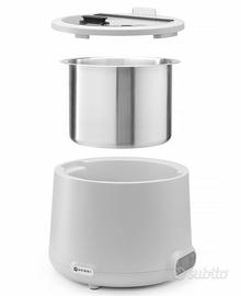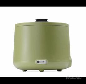 Capacità 8 litri Misure: diametro 36 cm. H.32 cm. Potenza: 500W Gamma di temperatura di funzionamento da 35 a 85 gradi. Mantiene calde zuppe, brodi, alimenti vari grazie al sistema bagno maria.