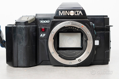 Bella collezione di fotocamere Minolta 7000 AF e 7000 AF Maxxum con obiettivo zoom Maxxum AF 35-70mm f4, vedere le foto per i dettagli.