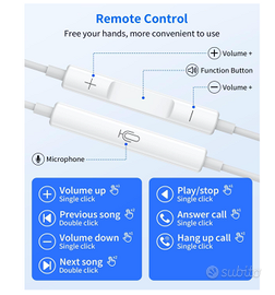 Vendo 2 pezzi cuffie per iphone con cavo lightning, in ear , microfono e controllo volume . 2 pezzi cuffie per iphone con cavo lightning, adatto solo a modelli che non hanno usbc. Cuffie in ear con centro di controllo per volume , risposta chiamata , per buttare giù la chiamata , per alzare e abbassare il volume e cambiare canzone . Affidabili certificate fmi , senza errori di riconoscimento, audio stereo di alta qualità e molto comode e stabili . Audio HD , leggere ed ergonomico e senza problemi di ricarica.