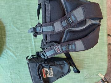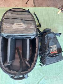 Vendo blocco composto da uno zaino porta corredo fotografico, capienza circa un dorso fotografico, un flash e due obiettivi.Un porta macchina fotografica Invicta, capienza un corpo macchina completo di teleobiettivo.